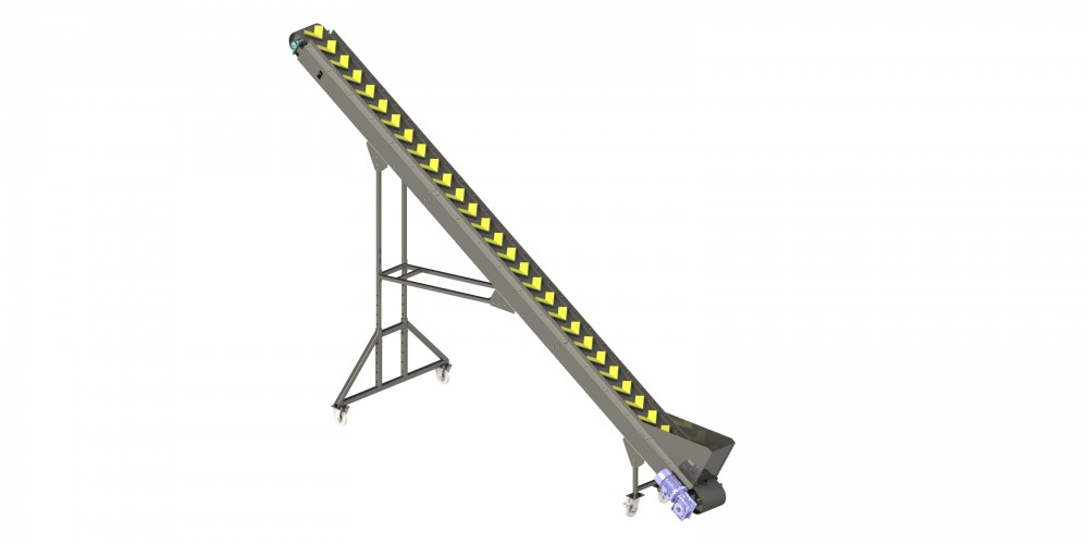 В стандартном исполнении конвейер комплектуется гладкой лентой. В зависимости от вида транспортируемого материала (кусковые материалы и штучные грузы), на конвейер может быть установлена шевронная лента.