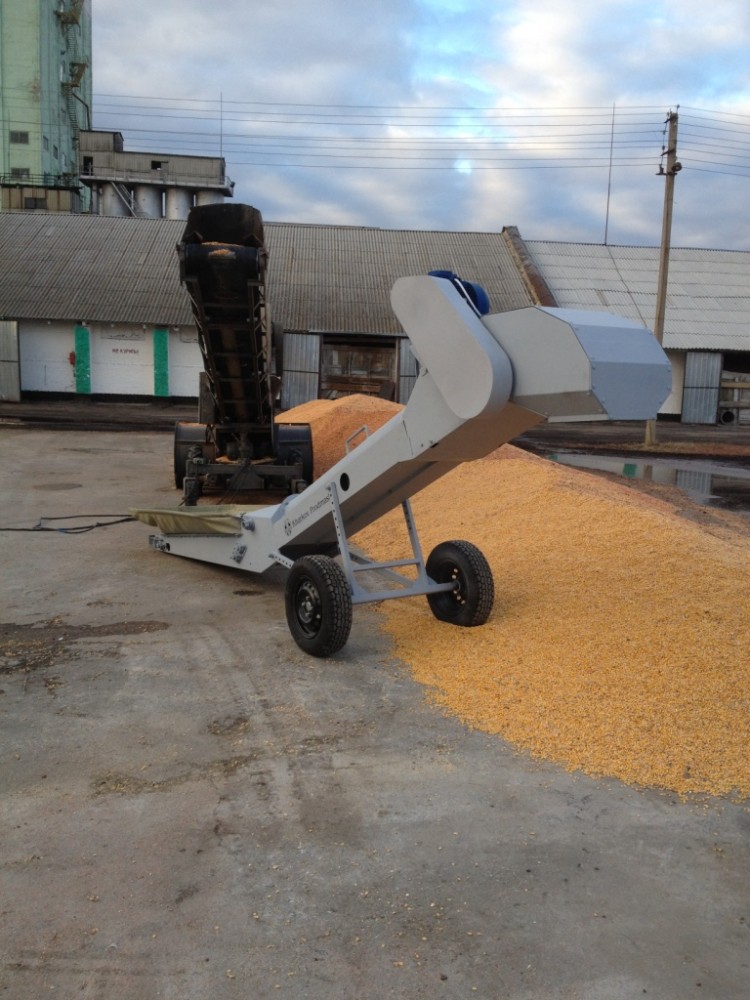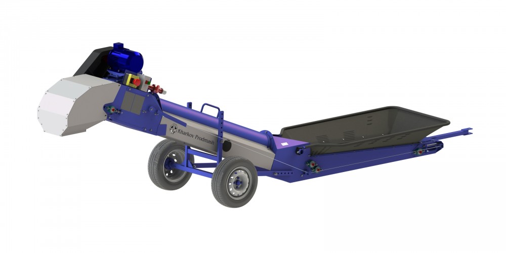 Низкопрофильный загрузочный лоток опускается при помощи рычага установленного на корпусе разгрузчика, перед установкой под вагон-хоппер и подымается после его установки в месте перегрузки материала. Затем включается привод разгрузчика и производится перегрузка материала. Высота и угол наклона конвейера осуществляется регулировкой колес.
