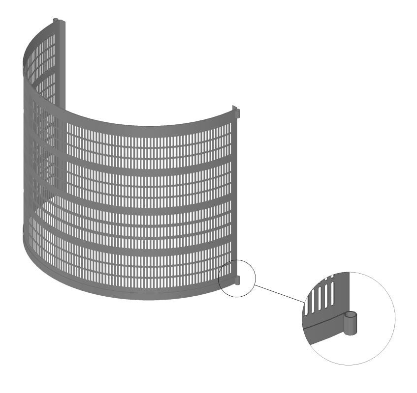 Секция решетная БЦС изготавливается из высококачественного холоднокатаного металла толщиной 1,0 мм, с габаритными размерами 490х990 мм. Секции БЦС поставляются гнутыми с радиусом гиба 300 мм, полностью готовыми к установке на вибросепаратор БЦС. Секции БЦС могут изготавливаться с круглыми и пазовыми отверстиями, пазовые отверстия располагаются вертикально, полотна с этим типом отверстий имеют неперфорированные горизонтальные полосы, так называемые «дорожки».