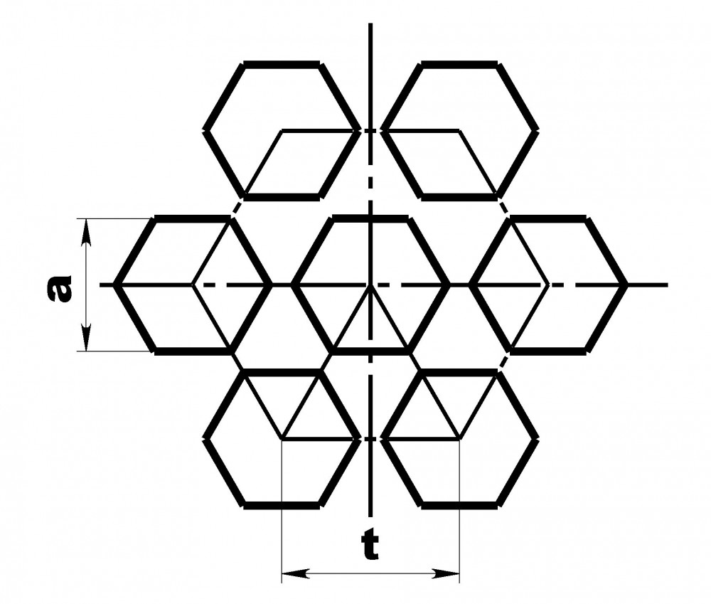 ![]() | a - розмір отвору, мм t - крок отвору, мм F - відкрита поверхня, % BxL - габаритні розміри полотна, мм b - товщина полотна, мм |