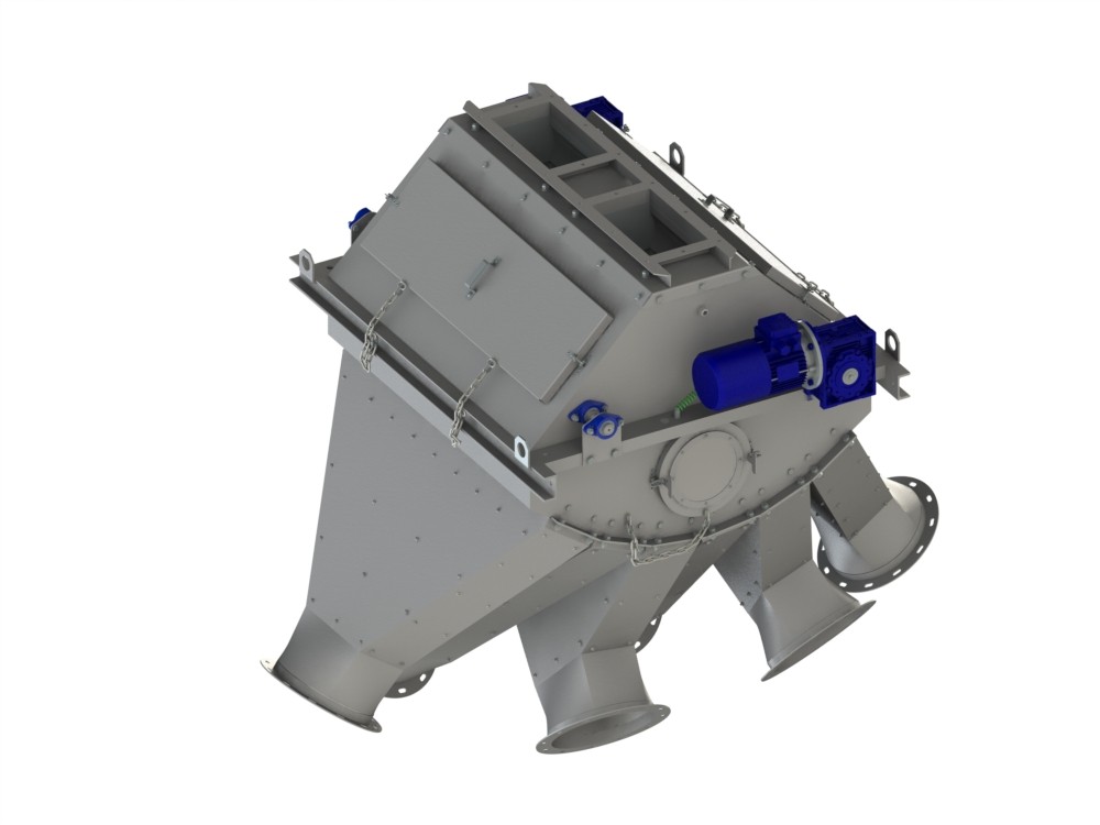 RP-6 flow distributor consists of two main units: revolving and driving. Bulk material enters the RP-6 (Flow distributor) through the loading flange, which is located at the top of the distributor. Then the revolving feeder transports the product towards the outlet branch pipe.