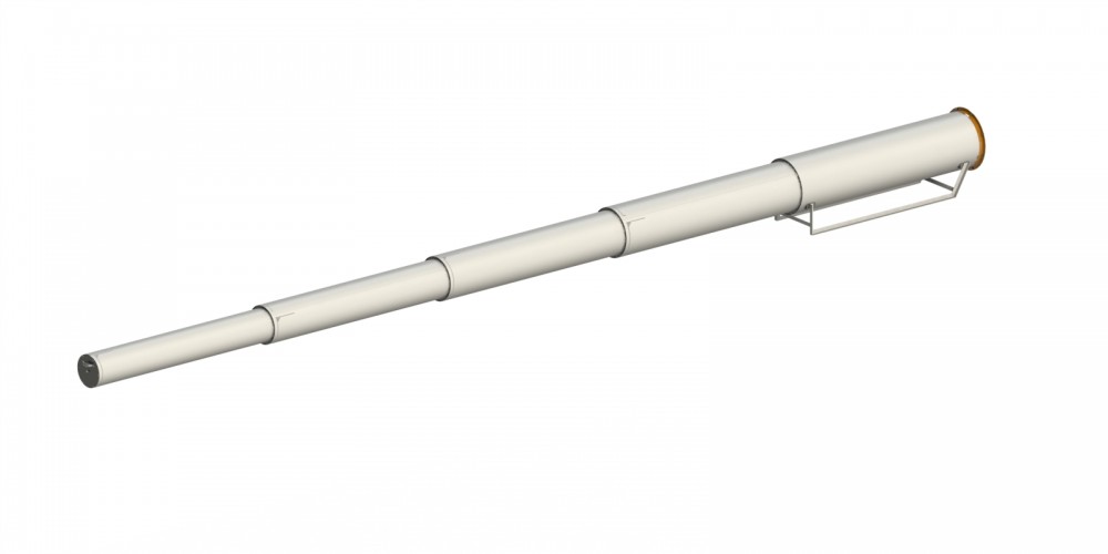 Перша ланка є основним несучим елементом установки і служить підставою (корпусом) , в якому розміщуються інші секції при транспортуванні. Зовні до корпусу приварені санчата для переміщення установки з одного місця на інше, на торці знаходиться знімна заглушка. Внутрішні секції представляють собою перфоровані циліндричні труби з гратчастого полотна з отворами 3 мм. Усередині кожної секції в задньому кінці закріплена хрестовина з центральним отвором для пропуску троса діаметром 10 мм, а в передньому обійма з повстяним ущільненням, яка служить для запобігання потрапляння зерна всередину в місцях сполучення труб. Один кінець троса для втягування секцій в корпус закріплюється на рим-болт кінцевої секції телескопічної установки, а другий закінчується вузлом для демонтажу труби з-під насипу. Для запобігання мимовільного висування секцій з корпусу при транспортуванні служить фіксатор, який закріплюється на тросі після втягування секцій.