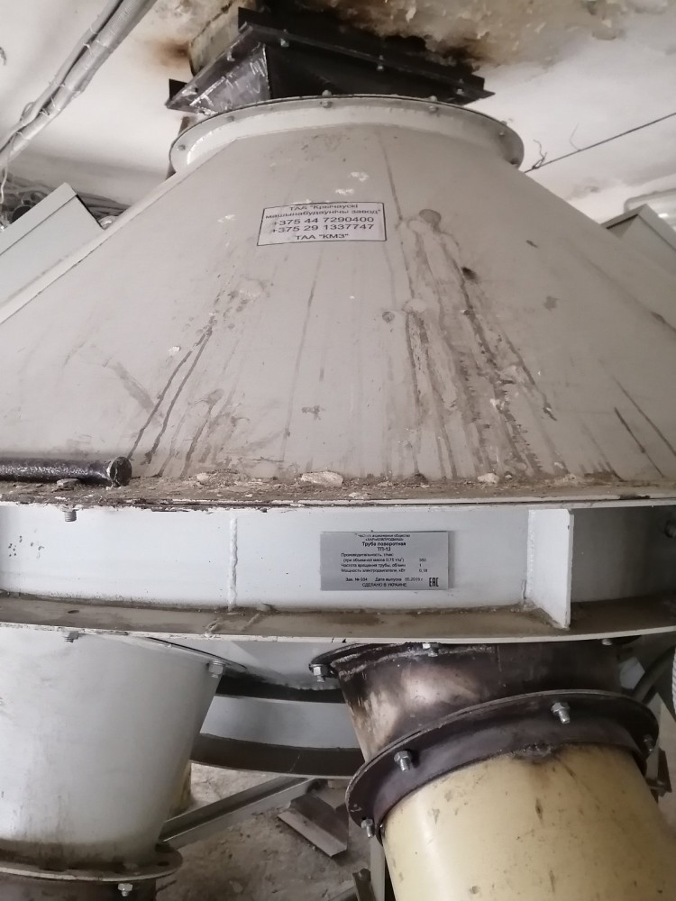 Труба поворотна ТП призначена для спрямування потоку зерна по одному з 8-12 напрямків. Труба поворотна типу ТП складається з корпусу, колони з поворотним патрубком, приводу, блоку кінцевих вимикачів.