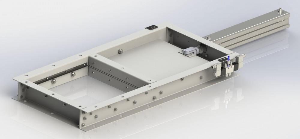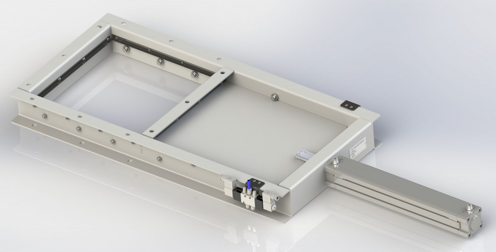 Задвижка УЗП состоит из каркаса (1), в котором по роликам (2) перемещается заслонка (3) - см. приложение 1. От пневматической сети по трубопроводу (4) сжатый воздух подаётся во внутреннюю полость пневмораспределителя (5), который по команде с пульта управления осуществляет подачу сжатого воздуха в соответствующую полость пневматического цилиндра.