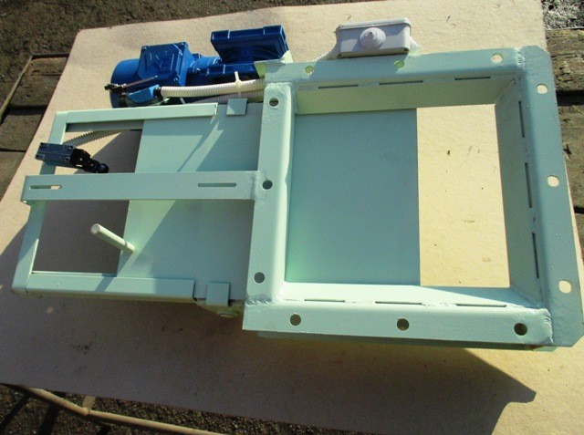 Для обмеження ходу шибера в засувці встановлені два кінцевих вимикача 8, за допомогою яких також можна регулювати величину перекриття шиберів робочого вікна.